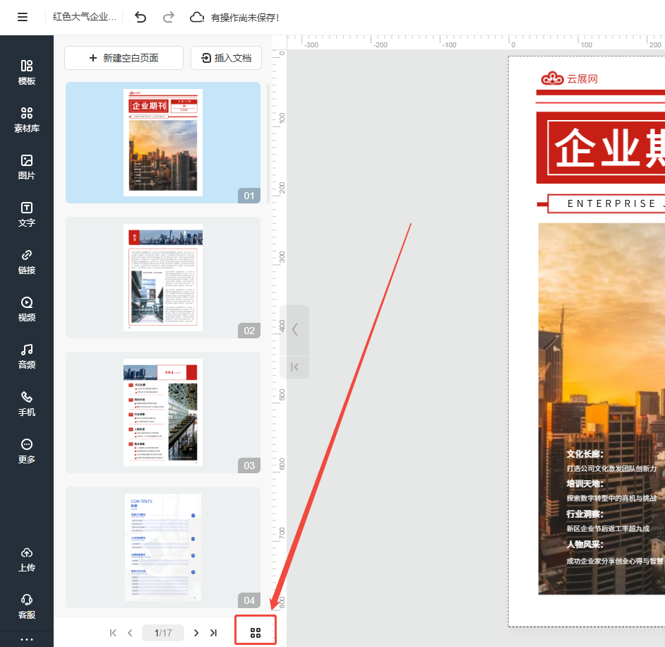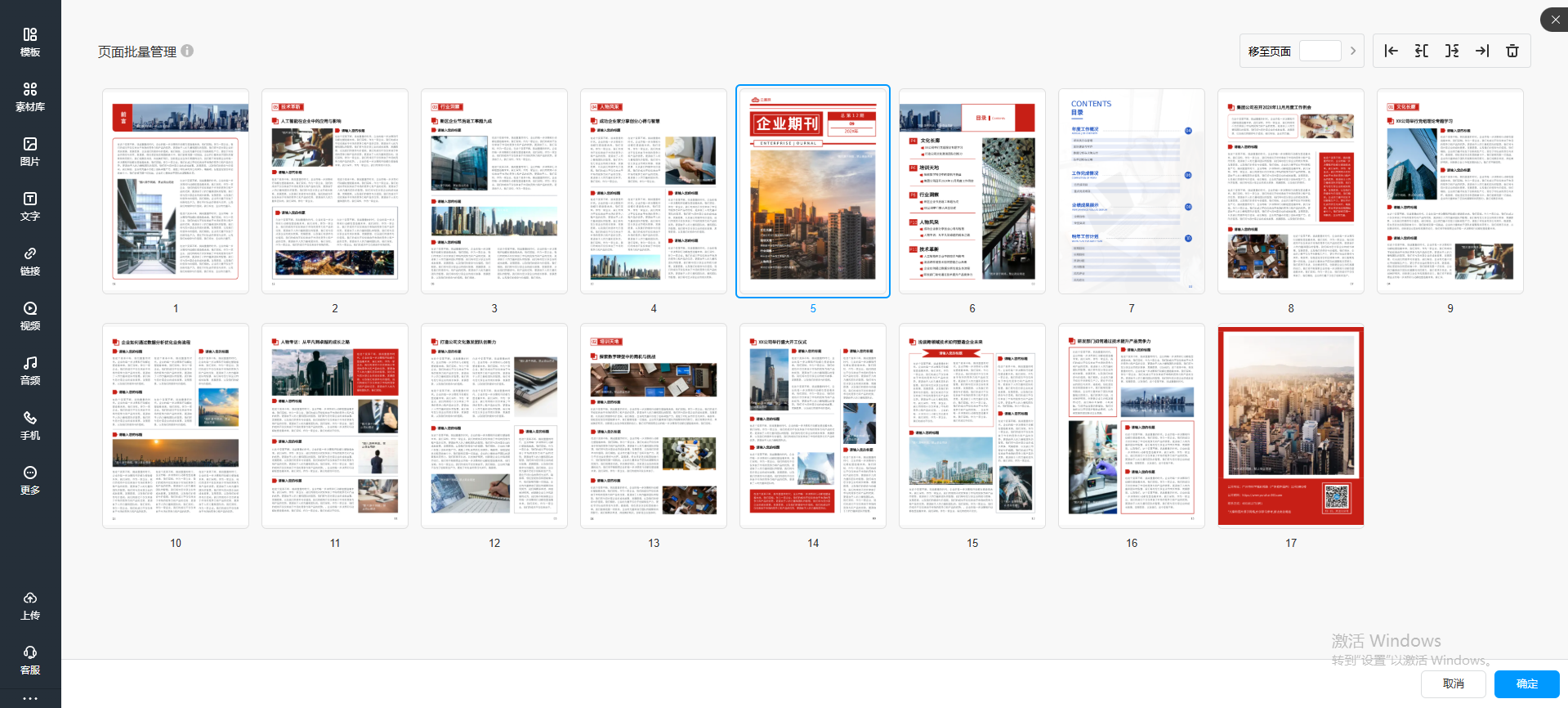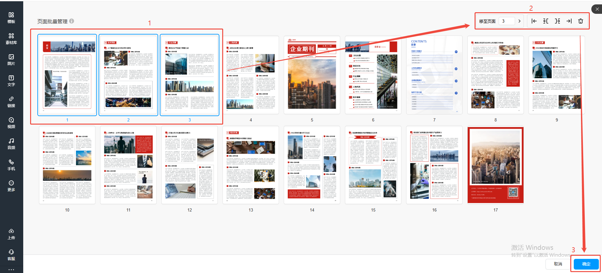 如果在編輯電子畫冊的時候需要同時移動較多頁面時,可以使用批量管理頁面的功能。