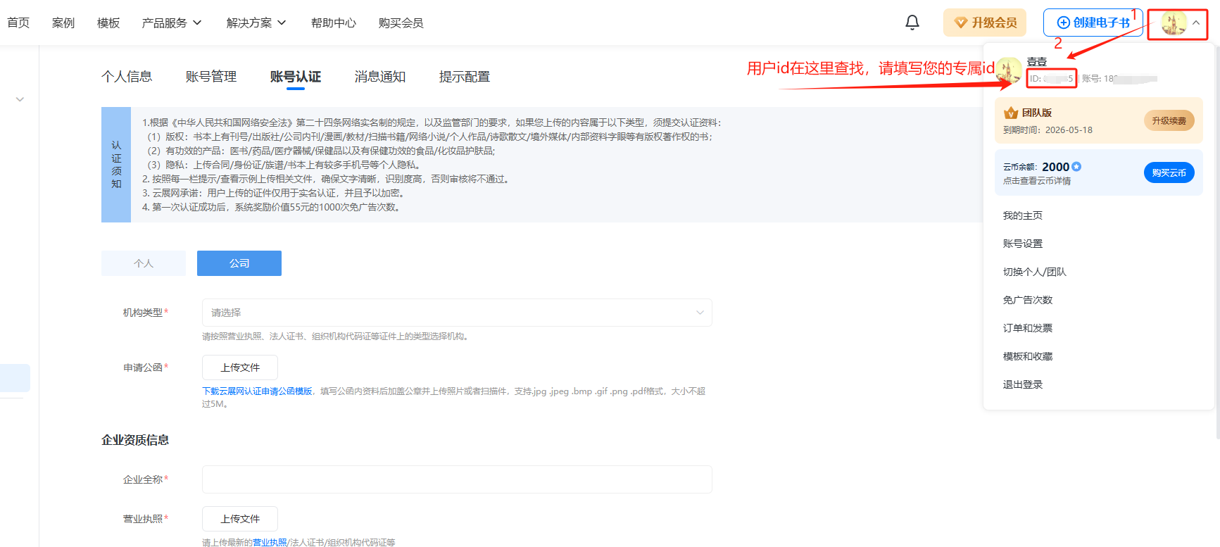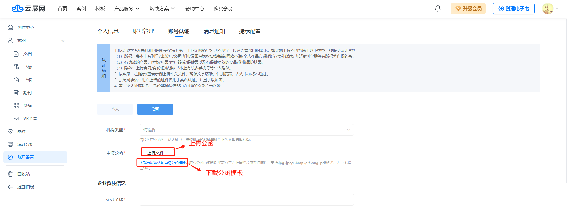 下載公司公函模板,填寫(xiě)公函里邊的用戶ID,單位名稱等,蓋公章以后上傳掃描件;