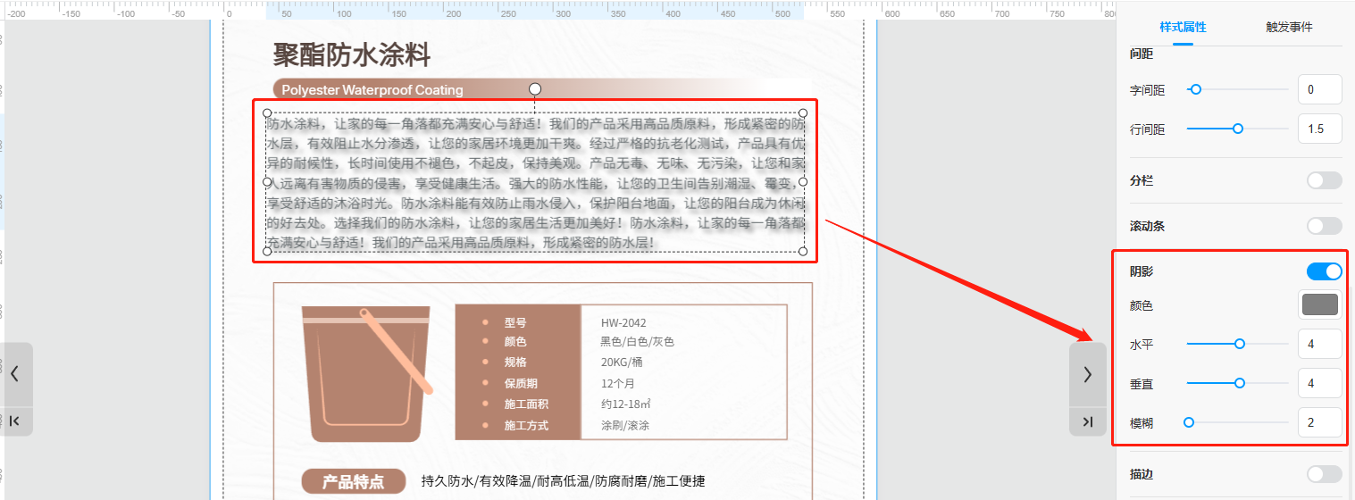 選中你所需要修改的文本框,打開【陰影】,可以給文字段落增加陰影效果。