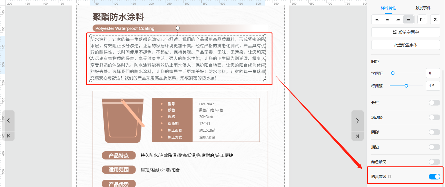 如果文本框中有文字或者標點符號顯示異常,可以選中文本框打開【語言兼容】,就會恢復正常。