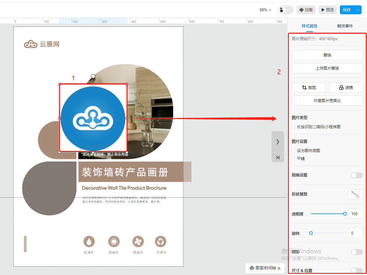 點擊頁面上的圖片,在右側(cè)設(shè)置樣式屬性。