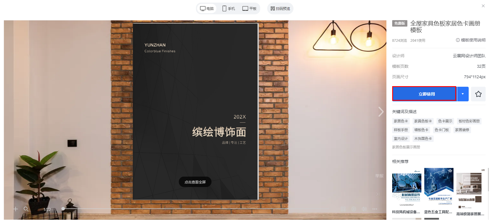 單擊 點中 心儀模板,點擊【立即使用】。