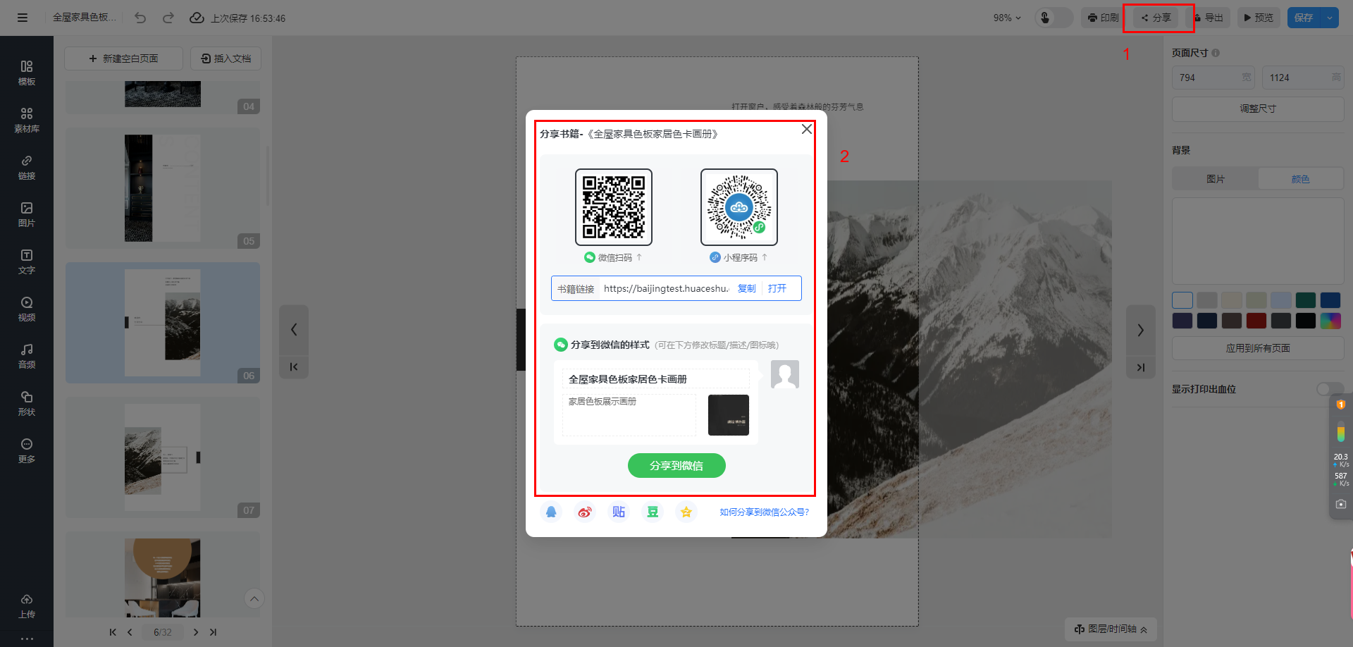 點擊【分享】獲取書本鏈接或者掃描二維碼進行分享發布。