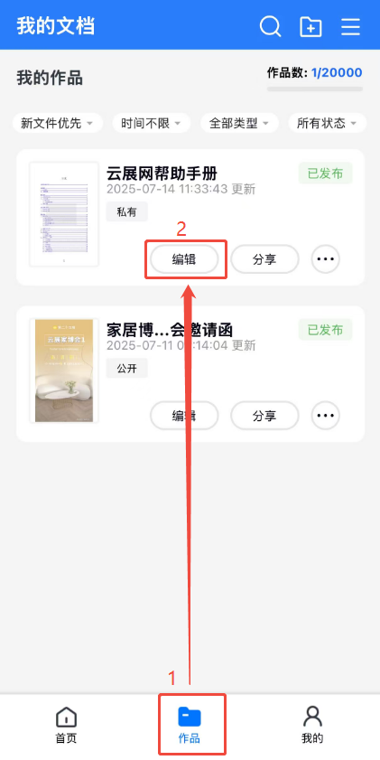 (1)點(diǎn)擊【作品】,然后點(diǎn)擊對(duì)應(yīng)電子書的【編輯】,最后點(diǎn)擊下方【基本設(shè)置】。
