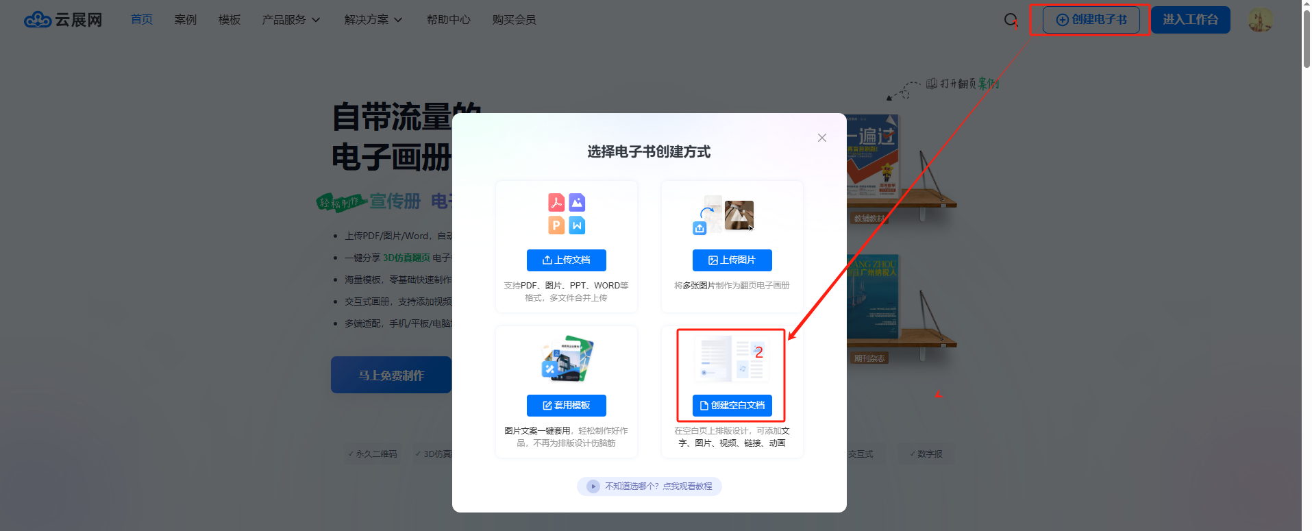 你可以從云展網(wǎng)首頁點(diǎn)擊【我的文檔】/【進(jìn)入工作臺】界面