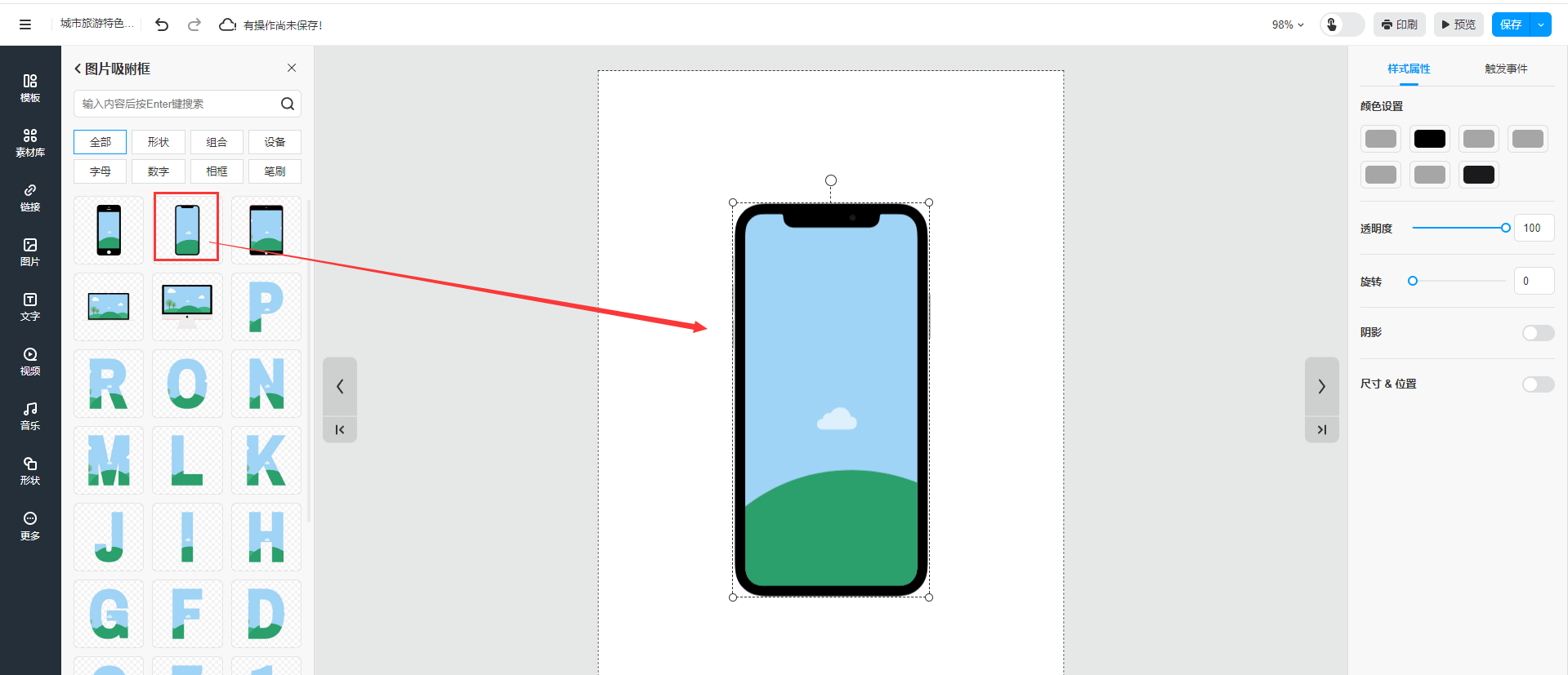 手機、相框、字母等圖片容器。你可以將其他的圖片放置在這個容器中,例如使用一個手機樣式的容器,然后再把其他圖片放置進去。