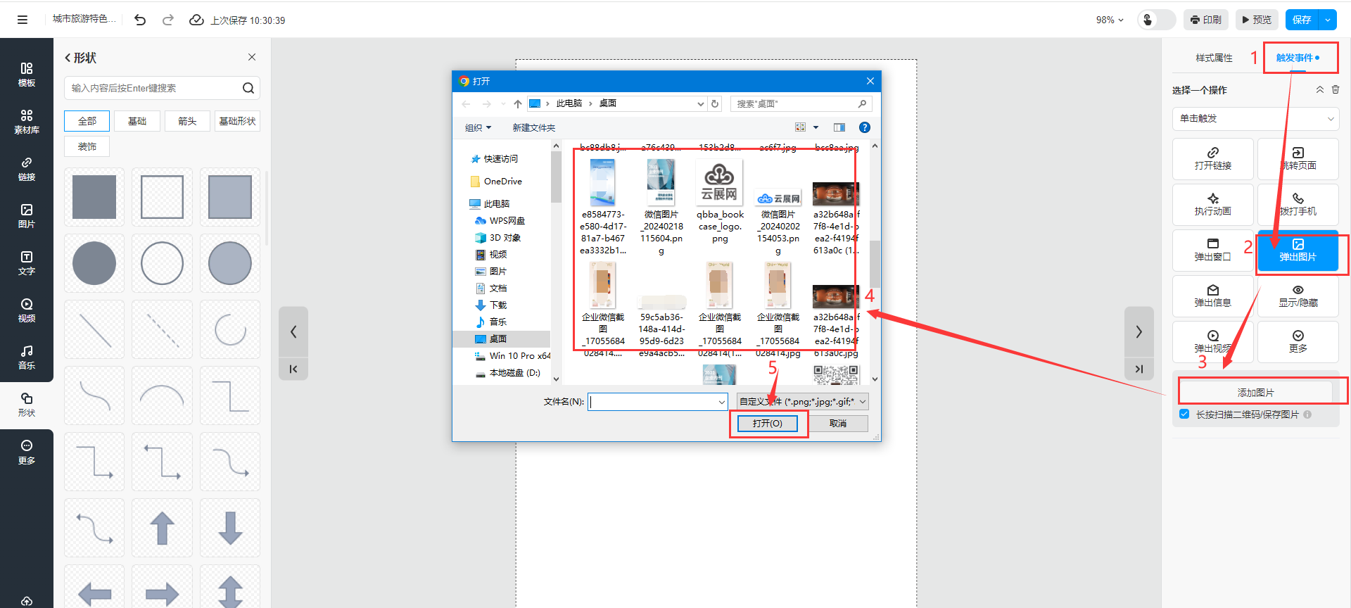 根據你的需要,你還可以在所選中元素上添加觸發事件。以【彈出圖片】為例來了解操作如何為元素添加觸發事件。比如,當用戶點擊電子書的某個位置時,彈出圖片。
