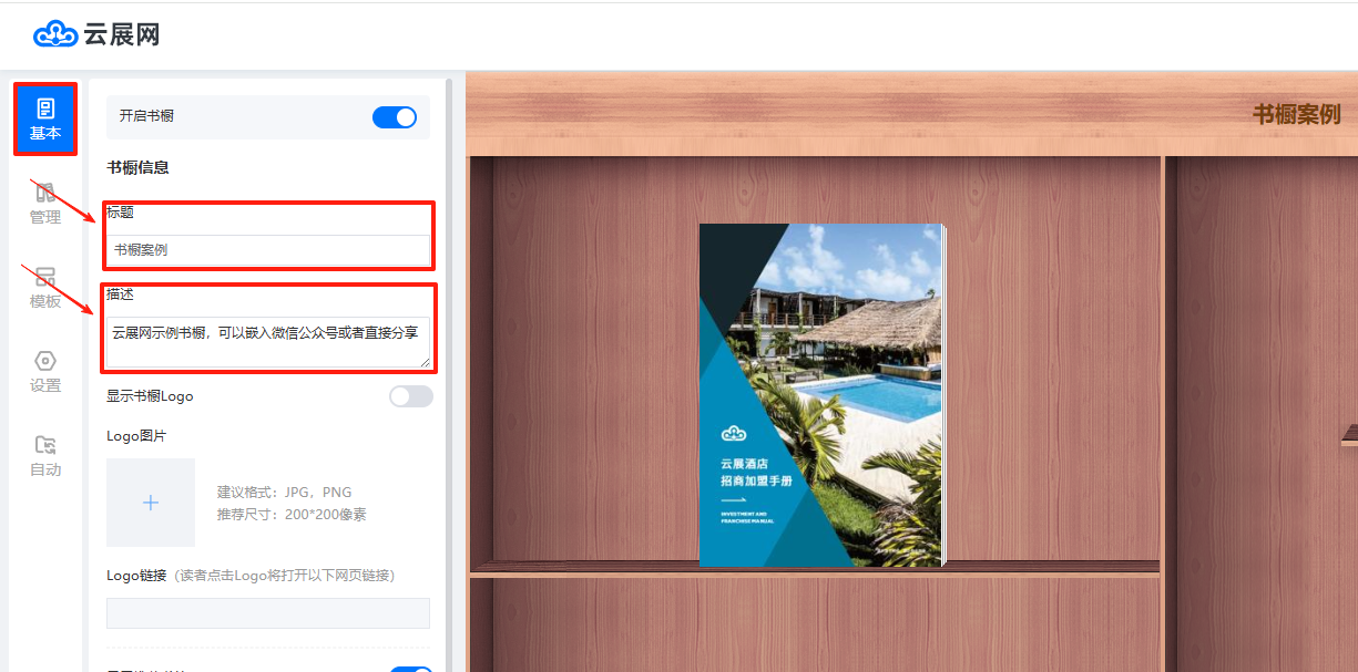 2、設(shè)置書櫥的標(biāo)題、描述、小圖標(biāo)
