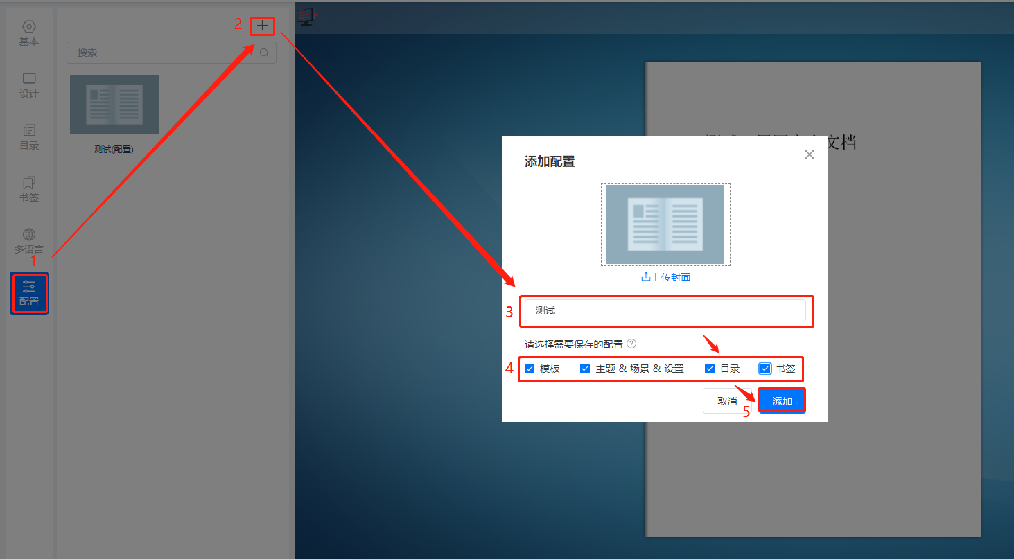 這個功能可以將畫冊設置的工具欄模板、主題、目錄、書簽作為配置保存下來,應用到另一本畫冊上。