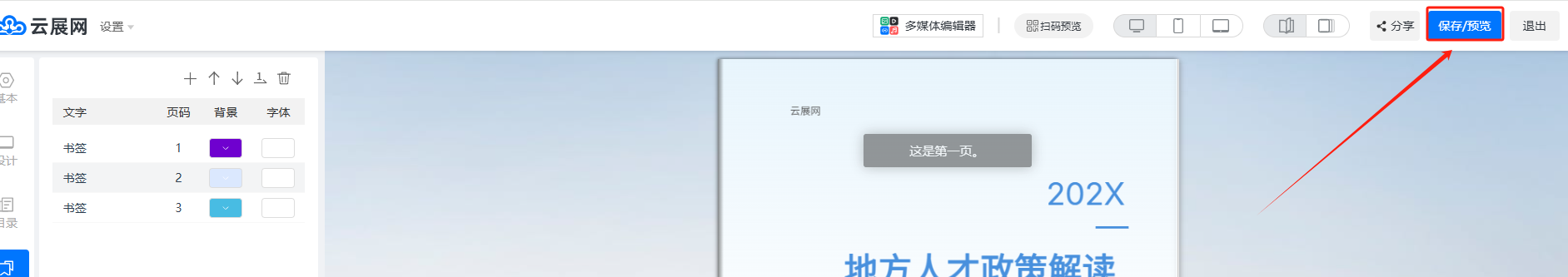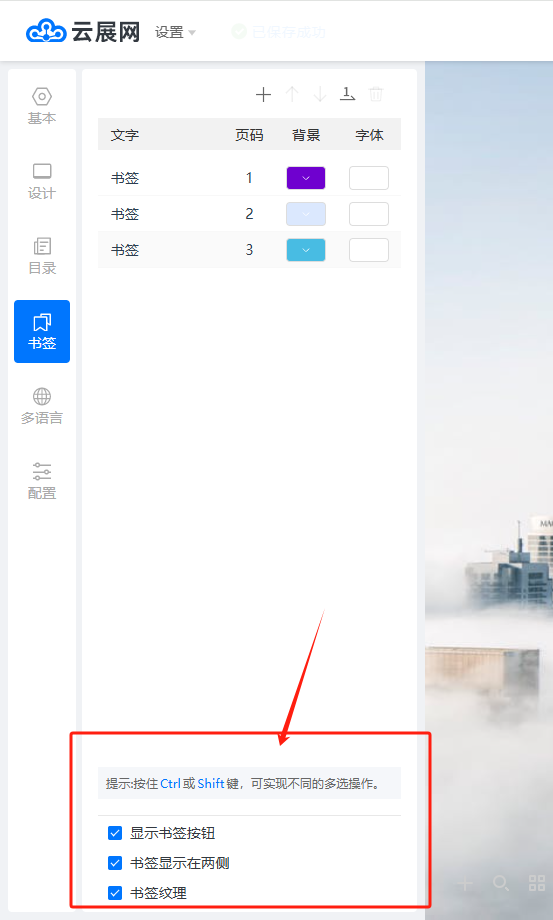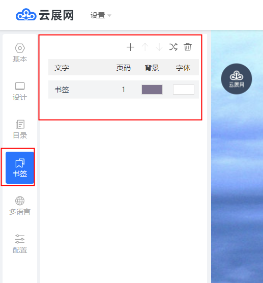 點擊【+】號添加書簽,并設置書簽的名稱、跳轉的頁面、背景顏色和字體