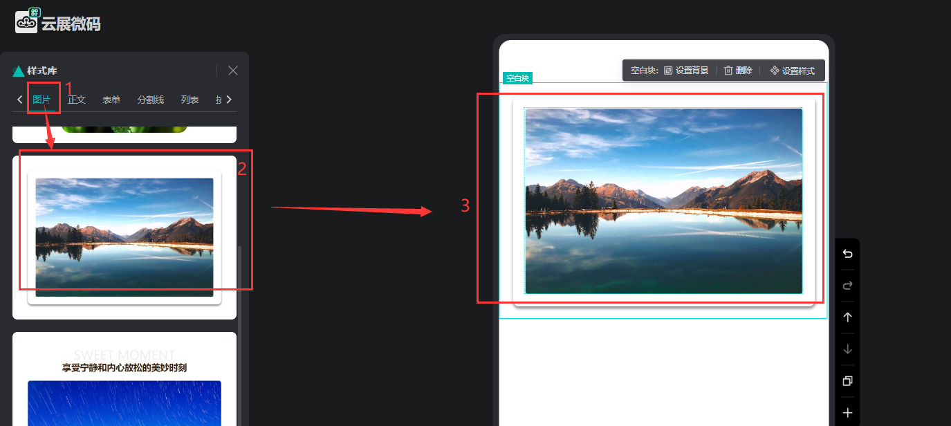 點擊【樣式庫】的【圖片】,選擇一個樣式,便會出現在微碼上。