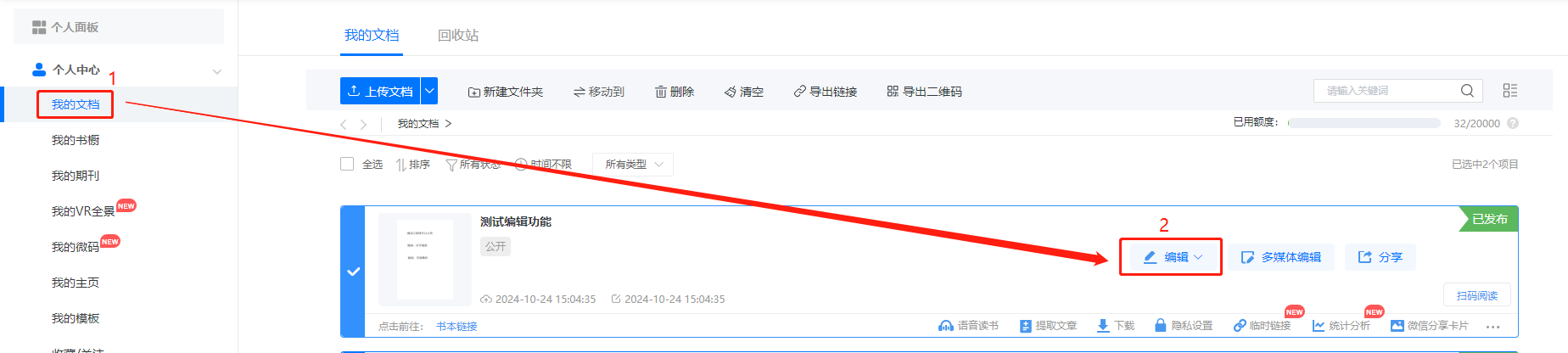 點擊【我的文檔】,選擇需要設(shè)置的電子書,點擊【編輯】。