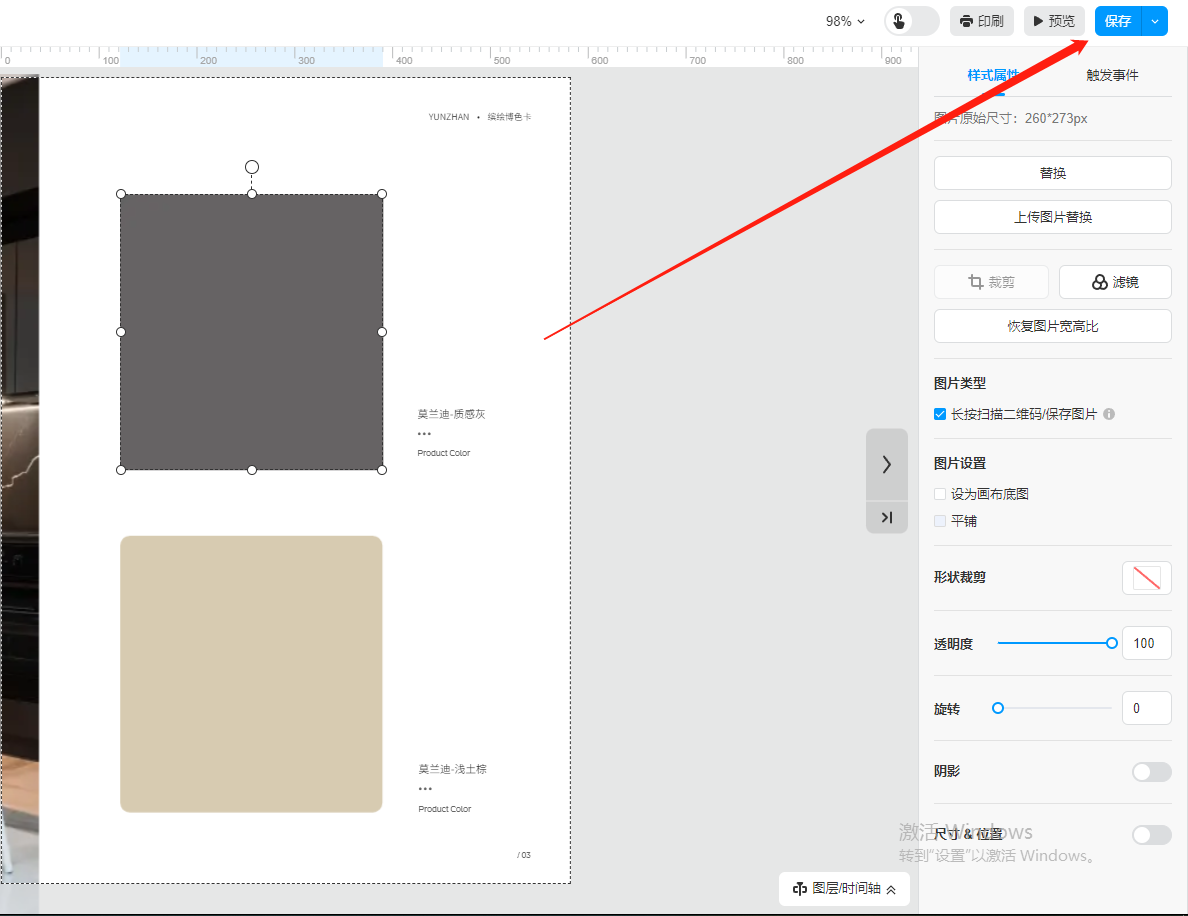 點擊右上角【保存/預覽】保存后即可長按保存產品圖。