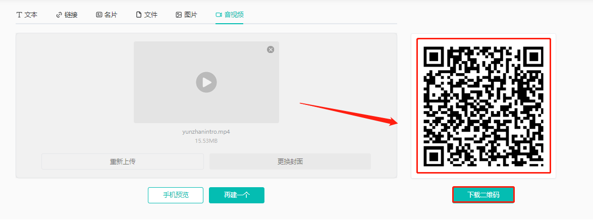 (1)點擊【音視頻】,然后點擊下方【上傳音視頻】上傳音頻或者視頻文件,點擊【生成二維碼】。